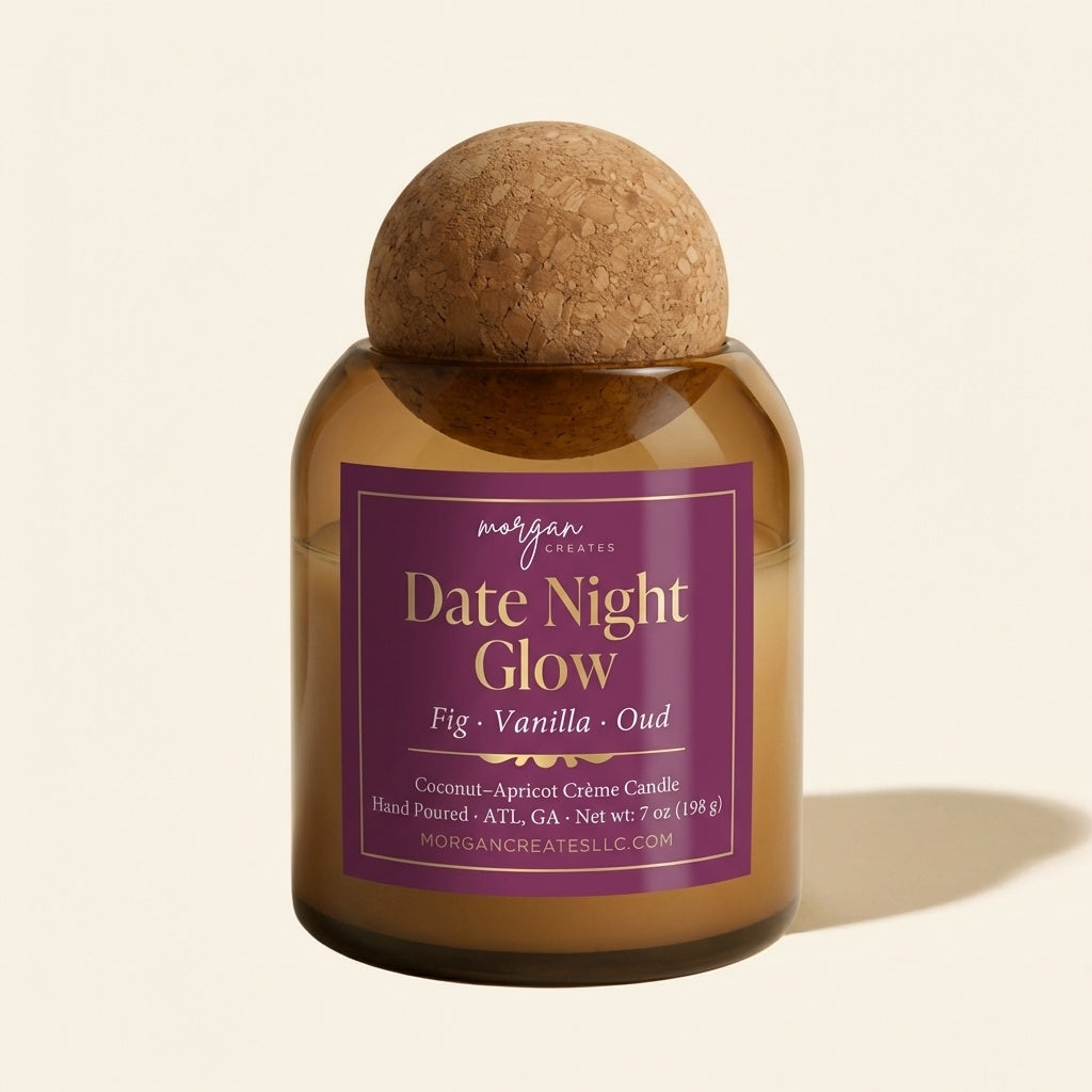 Romantic, moody, and indulgent. Date Night Glow is a limited-edition candle from the Beets, Bacon & Bad Dates collection, poured in a translucent amber glass vessel with a natural crackling wooden wick.